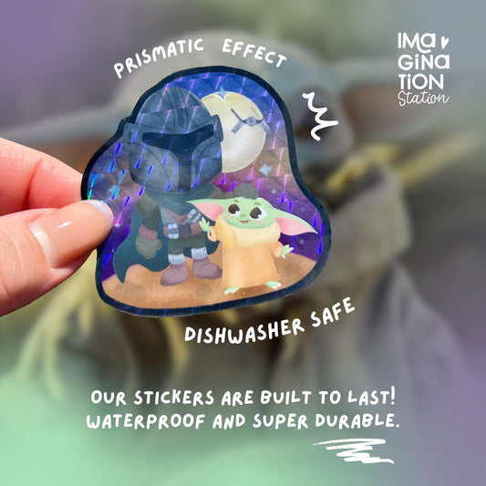 Baby Yoda Mandalorian Sticker - Prismatic Glossy Vinyl