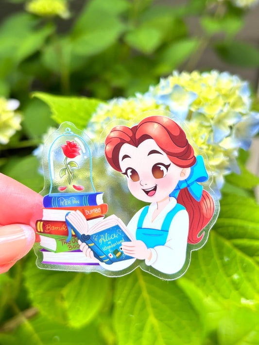 Belle Sticker – Book-Loving Princess Magic in Clear Glossy Vinyl!