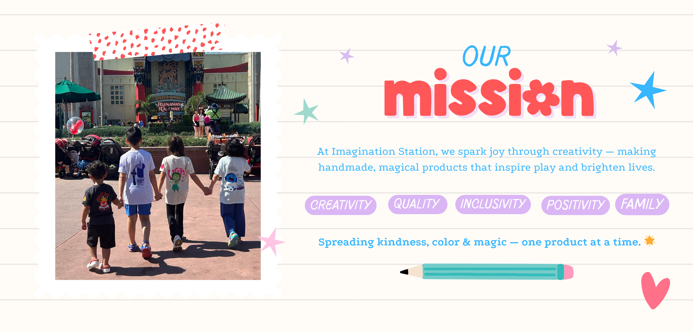 Imagination Station was born from a shared dream between sisters Maria Jose and Maria Fernanda a vision fueled by creativity, storytelling, and imagination. One night, they envisioned a world where anything was possible: castles in the clouds, rainbow rooftops, and rivers of ink. A voice whispered, “Here, you can create anything you dream.”